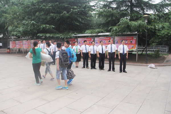 走进校门,学校领导庄重的站成一排,用微笑迎接着每位家长和学生的到来。校园内处处可以看到面带微笑的老师在用心对学生和家长进行引导,负责接待的师生耐心地指导新生办理报到入学的各种手续、讲解注意事项等。学校郭校长不时地了解新生报到的情况,及时帮助家长们排忧解难,让家长们安心、放心、温馨。271教育文化的魅力处处彰显于校园,学校提倡的"为学生和家长提供最优服务"的理念真正得以落实。
