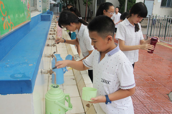 随后,初一新生在各班教室召开班会,首席导师对学生如何就餐、打水、午休、晚睡等方面进行了耐心的指导培训。中午学生秩序井然地到餐厅就餐、宿舍午休。下午学生整齐地坐在教室迎接军训教官的到来,学生将要从此开始为期十天的军训。相信每个孩子精彩的人生故事将从奎文实验初中开始,孩子们的美好梦想将从这里起航,孩子们必将收获美好、灿烂的明天!